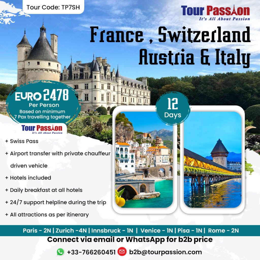 Ready for france switzerland austria italy 12 days? Email b2b@tourpassion.com or WhatsApp +33 7 66 26 04 51.